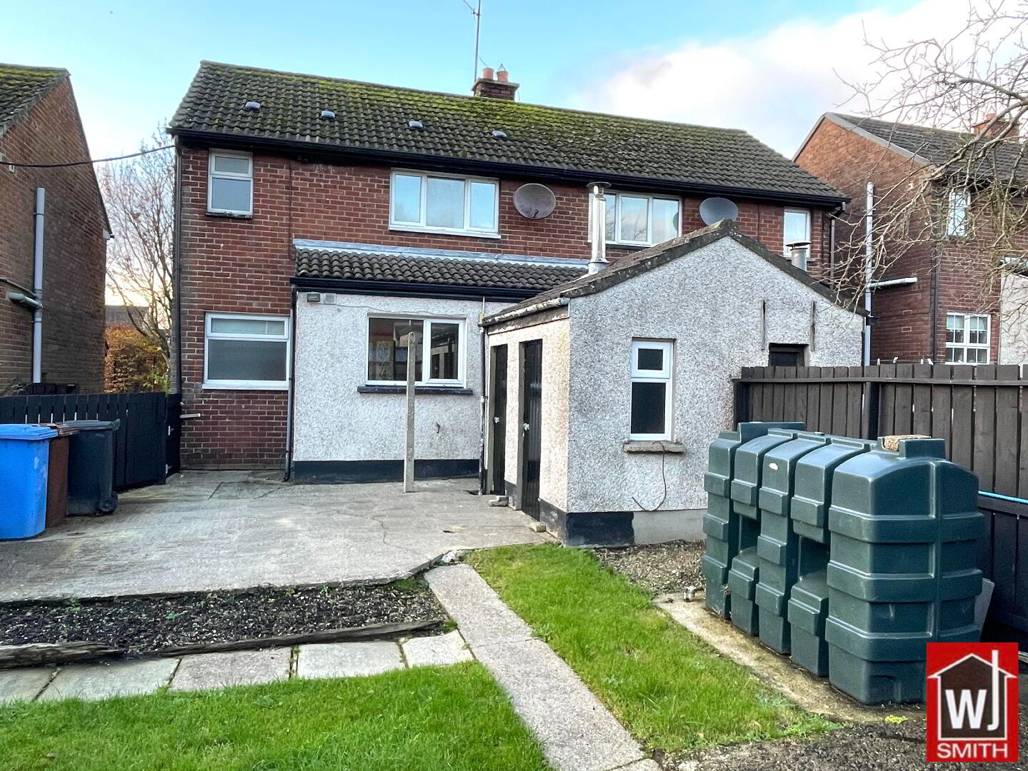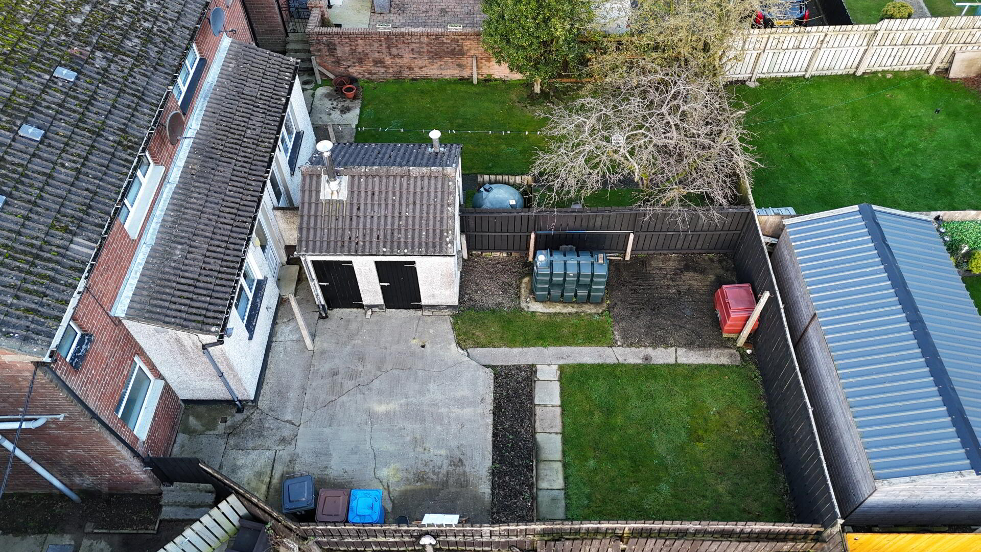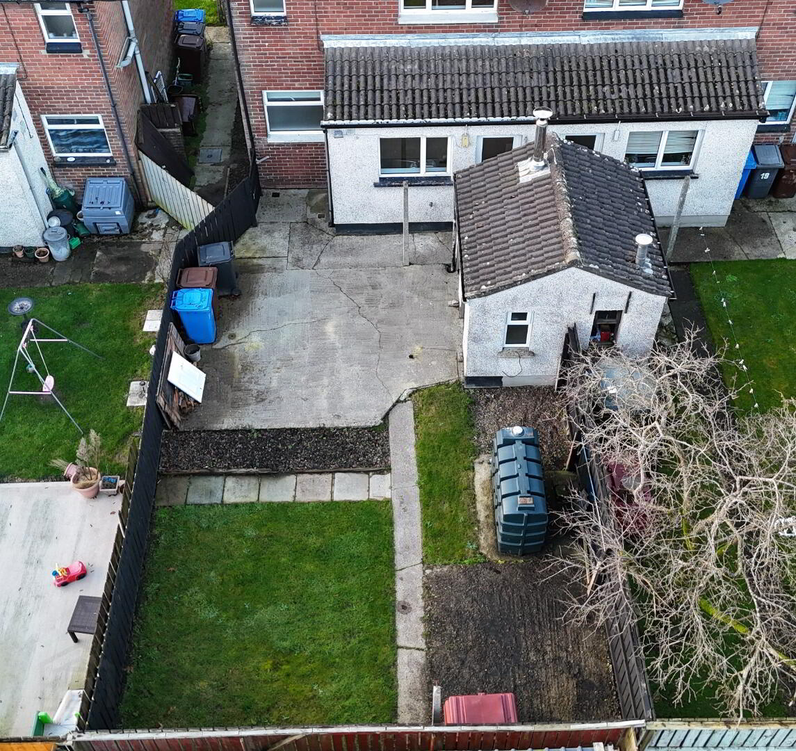 To the rear of the property there is an enclosed concrete area with a storage house and separate boiler house, mature garden area with flagged pathway. Also, to the front of the property there is a garden area with a perimeter fence and cement pathway leading to the front door.