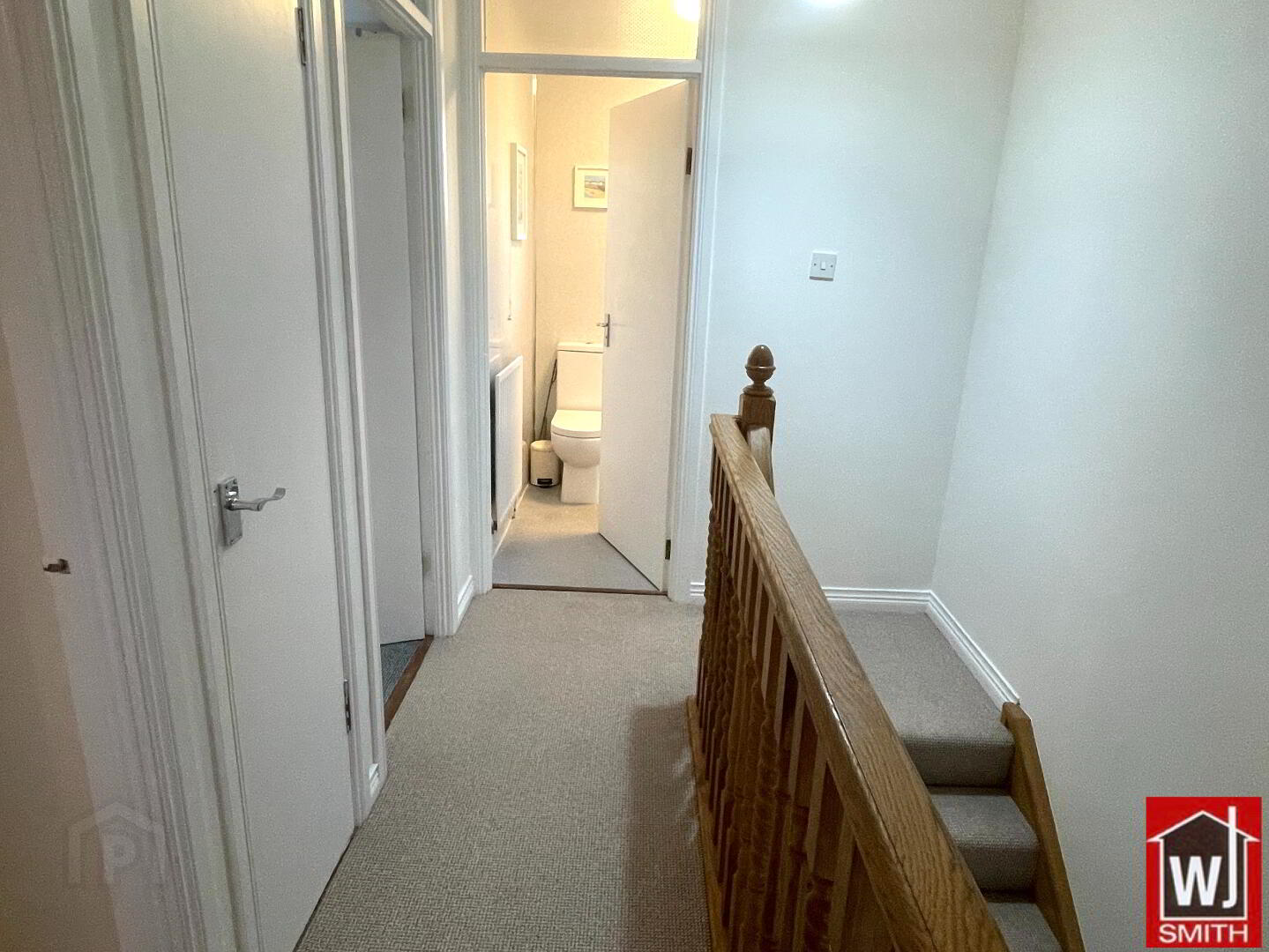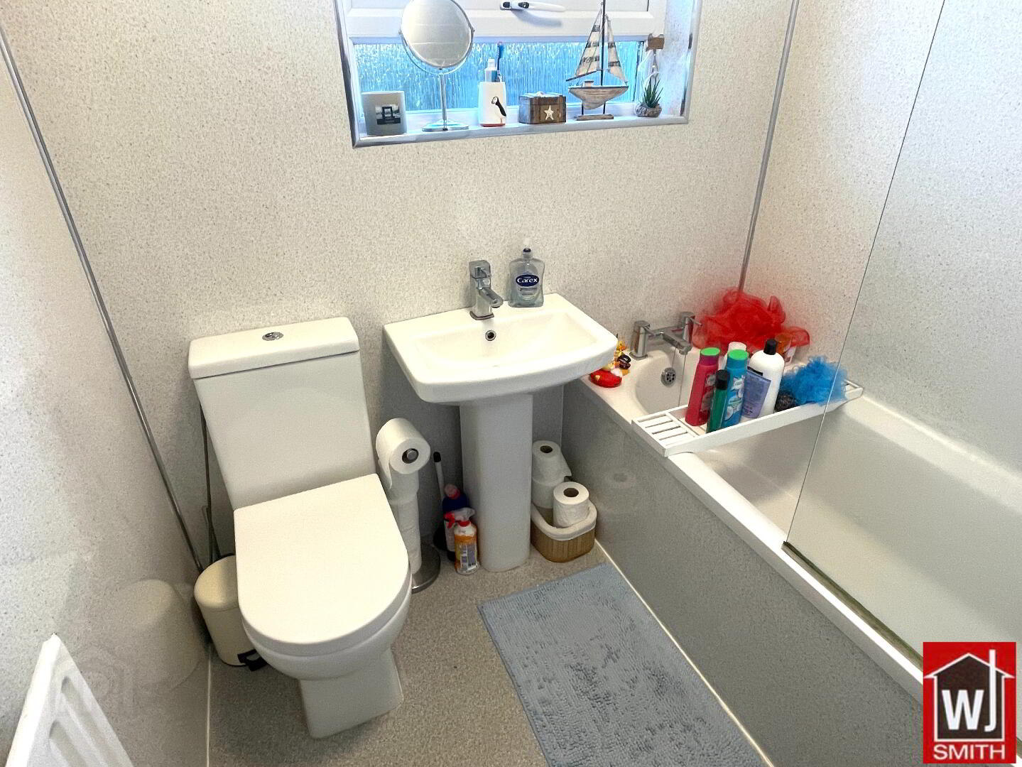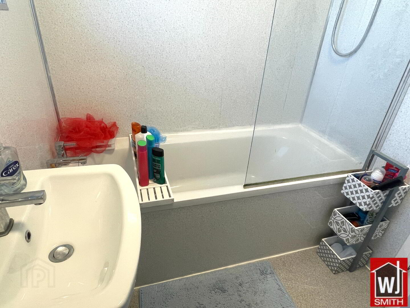 Upstairs, there is a bright landing with additional storage, 2 double bedrooms (both with built-in storage), a single bedroom and fully panelled family bathroom with white bathroom suite and electric shower.
