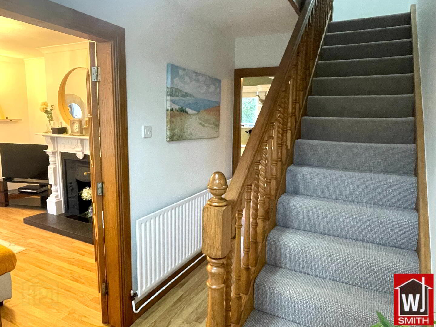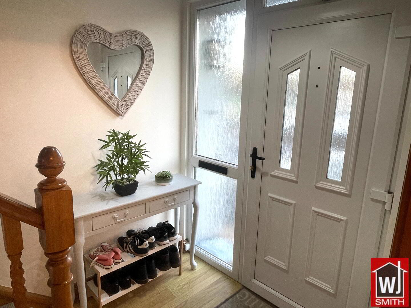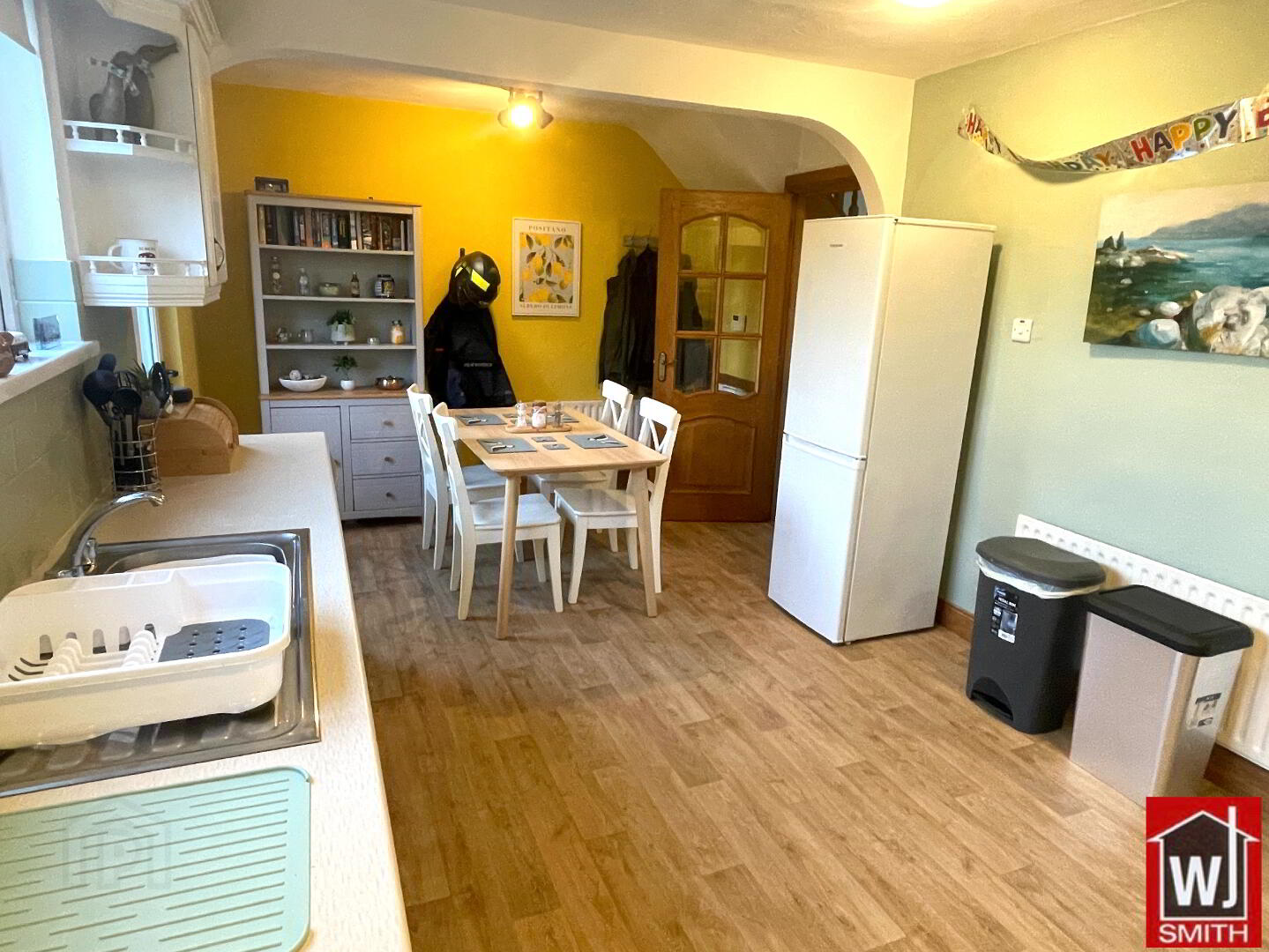 The interior of this property is in first-class condition throughout and boasts a bright entrance hallway, spacious reception room with antique-style fireplace and location for an electric fire, modern kitchen / dinette with white kitchen units and a spacious dining area with additional storage under stairs.