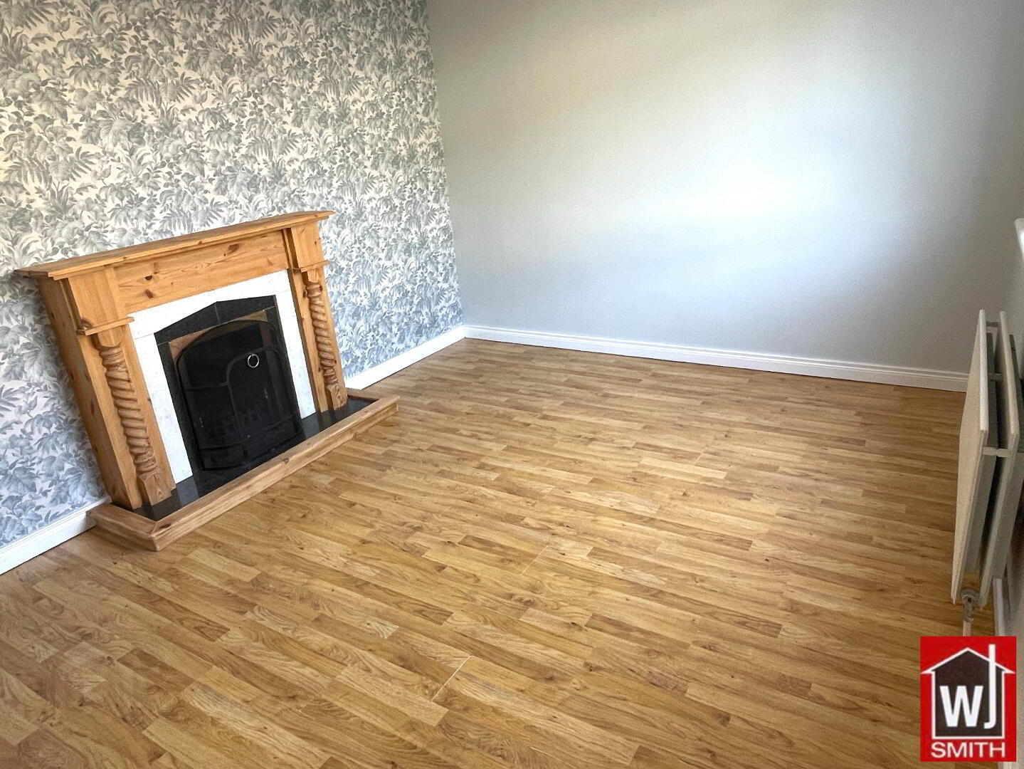 Living Room – 13’05” X 10’04” Antique Style Fireplace with Marble Tiles, Pine Surround and Back Boiler; Laminate Wooden Floor