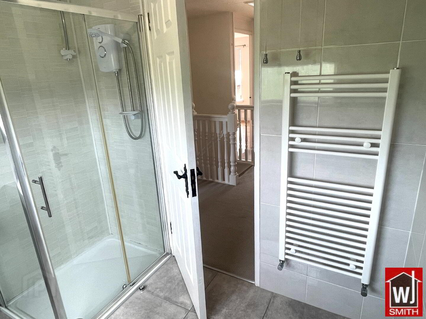 Shower Room – 6’06” X 7’07” Large Corner Electric Shower; White Toilet and Wash Hand Basin; Gloss White Heated Tower Rail; Extractor Fan; Fully Tiled Walls; Tiled Floor