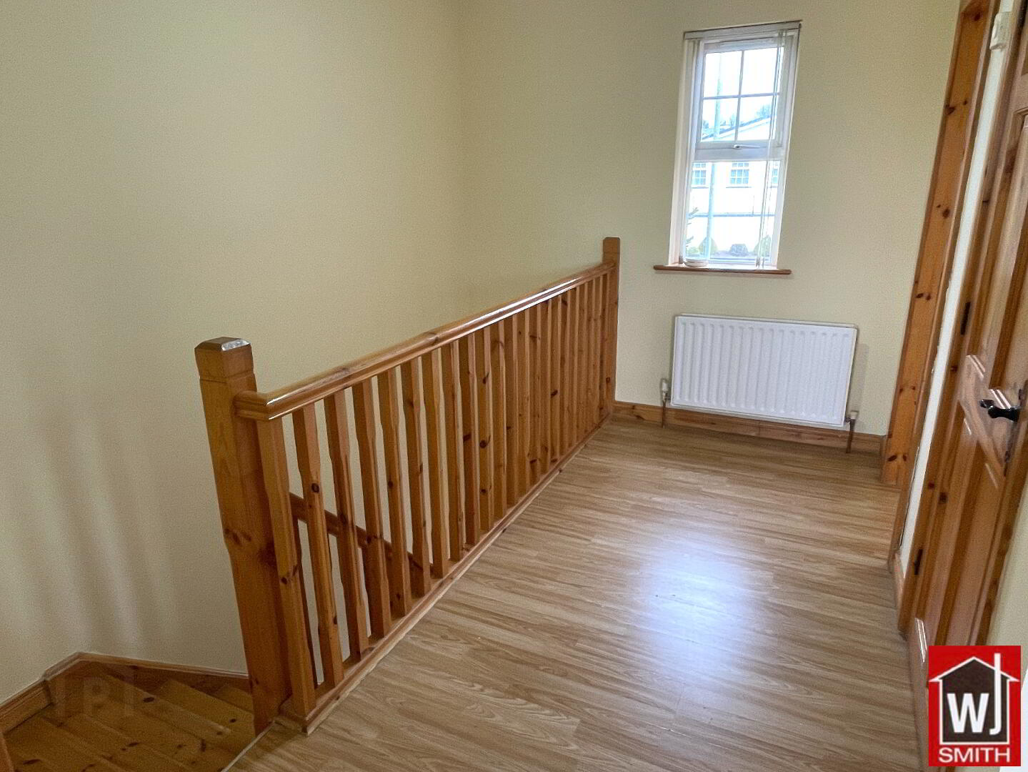 Spacious Landing with Hot press; Laminated Wood Flooring